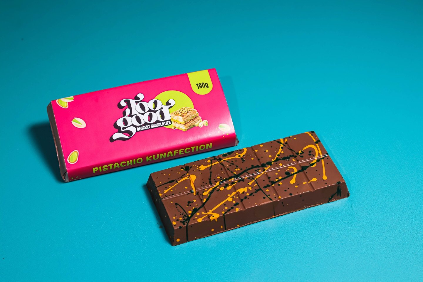 Toogood Chocolatier Roasted kunafeh mixed with premium pistachio cream and encased in artistic handmade milk chocolate. in. View Socials Next